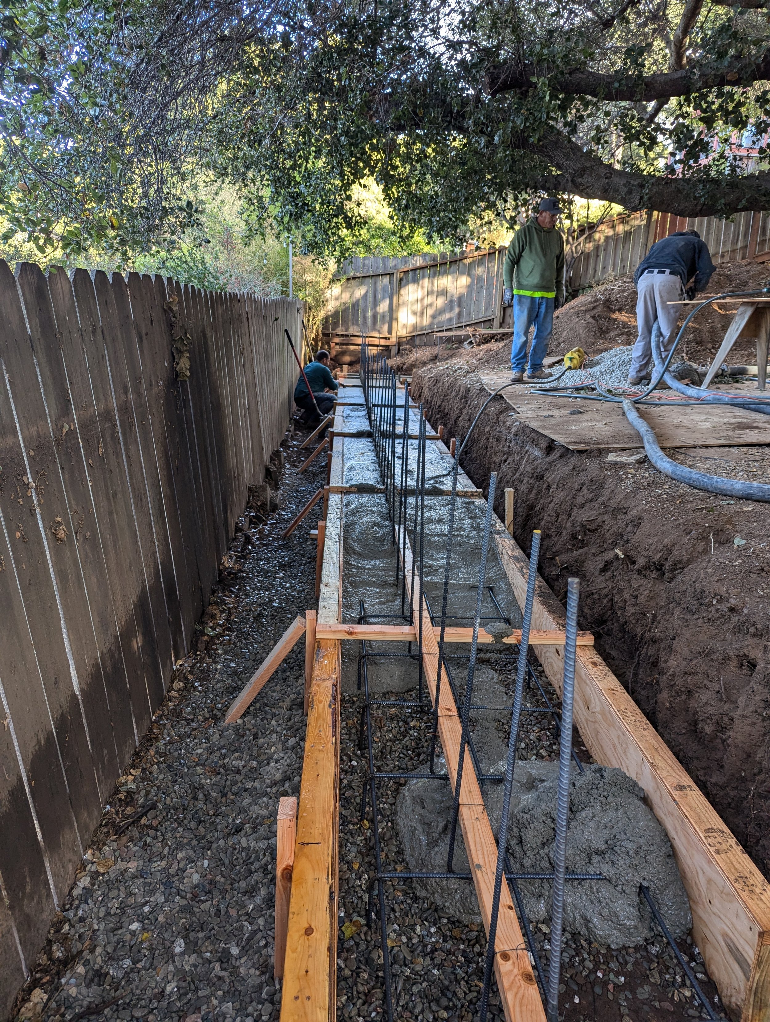 For retaining walls, we work in concrete, interlocking block, CMU (cinder block), and timber, selecting the right material for your site conditions, soil type, and load requirements. For walls that require a building permit and stamped civil drawings, we work directly with structural engineers to get the job permitted and built correctly. We've built walls on steep hillside lots with limited access, rebuilt walls that other contractors installed wrong, and handled everything from small garden walls to large structural projects.